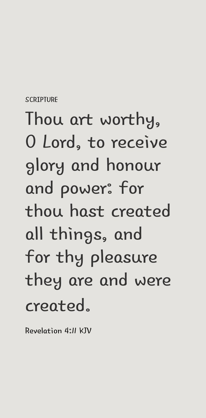 Thou art worthy, O Lord, to receive glory and honour and power: for thou hast created all things, and for thy pleasure they are and were created.